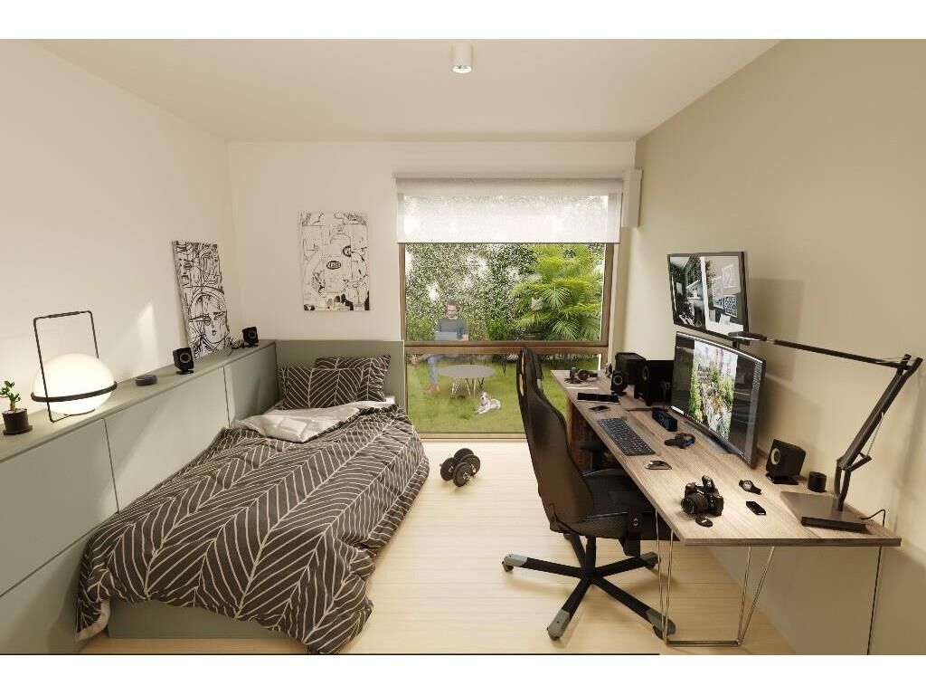 Se definen cuatro jardines interiores y un jardín frontal para el acceso y uso de todos. Cada uno se caracteriza por la incorporación de un árbol autóctono distinto. Amenities: parrilleros semicubiertos, laundry, áreas de servicios, coliving interior con terraza exterior, wet spa con solarium, huerta. Dos ascensores electromecánicos. 41 Garajes en subsueloy bicicleteros. Domótica: Control de ingreso, de iluminación de los espacios y de audio y video.